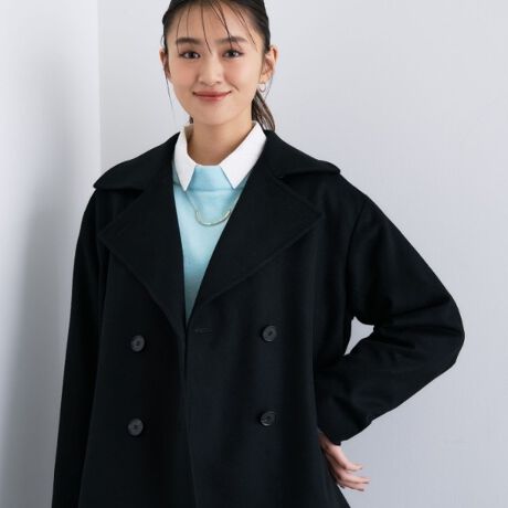 極薄手のウール100%素材を使用したショートトレンチコートです。