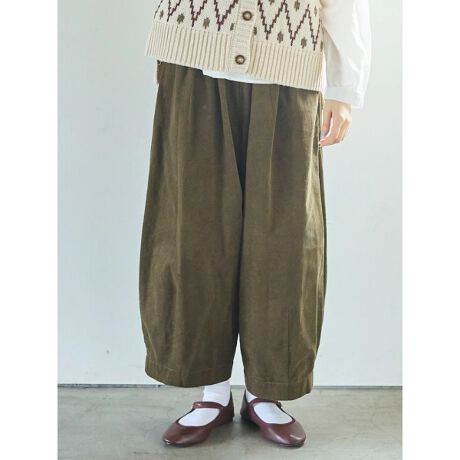 [型番:25410689664]温かみのあるコーデュロイ生地を使用したパンツ。ふんわりと丸みを帯びたバルーンシルエットになっているので、立体的な印象を与えます。ラクな穿き心地を実現するウエストゴム仕様がポイント。休日のお出かけやダウンユースなど、幅広いコーディネートを楽しめるアイテムです。Hare no hi/ハレノヒ