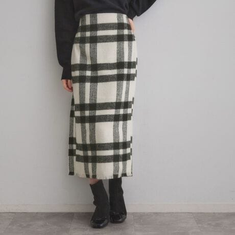 起毛感のあるチェック柄をアソート展開したIラインシルエットのデザインスカート。
