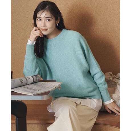 ゆったりとしたドルマンスリーブが特徴のプルオーバーニットです。体型を優しくカバーしながら、こなれた印象を演出します。表情豊かな畦編みに、繊細なラメ糸を一緒に編み込むことで、動くたびに上品な輝きを放ち、シンプルな中にも華やかさをプラスしました。首元は編み続きのハイネックデザインで、暖かさはもちろん、顔周りをすっきりと見せ、上品な印象を与えます。 一枚で着映えするため、きれいめパンツやタイトスカートと合わせればオフィススタイルに、デニムやフレアスカートと合わせれば休日のカジュアルスタイルにも活躍します。 カラーは、温かみのある上品なキャメル(#034)、顔色を明るく見せる柔らかなアイボリー(#002)、シックで合わせやすい万能カラーのグレー(#004)、コーディネートのアクセントになるスモーキーグリーン(#063)の4色展開です。