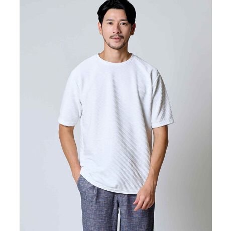 3種類の層が重なり織りなすオリジナルジャガードのダイヤ柄Tシャツ。