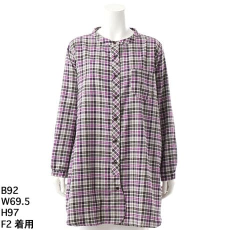 ヘリンボーンチェックラウンドカラーロングシャツ【日本製】