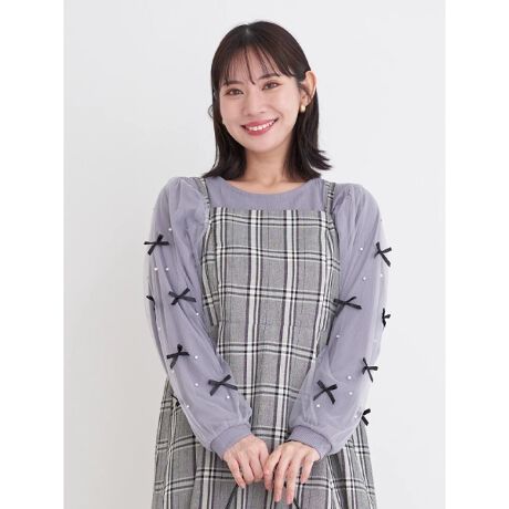 ・袖部分のリボン×パールビーズデザインは着るだけでガーリーな印象に。
