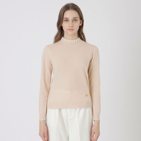 [型番:55N32687__]◆衿元の配色がポイントのシンプルニットプルオーバー襟もとの配色がポイントのデザインニットです。ささやかなタックの程よい立ち襟は、上品な印象を演出します。一枚着はもちろん、レイヤードアイテムとしても活躍するアイテムです。※展開店舗については、予告なく変更になる場合がございます。