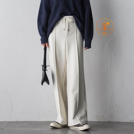 履き心地の良いマイクロベロアとのボンディングジャージーを使用したワイドパンツ。