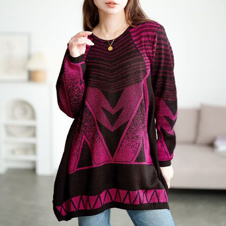 大胆な幾何学模様と上品なラメが印象的なラメニットチュニックです。ほどよく広がるAラインシルエットが女性らしい抜け感を演出。気になるウエストや腰まわりをふんわり包み込んでくれるバランスの良さが魅力。ラメ糸が入ったきらきらニットに個性的な幾何学模様。シンプルなボトムスに合わせるだけでコーデが完成する存在感のある一枚。休日のカジュアルコーデやお出かけスタイルにおすすめ、アクセをプラスすれば一気に上級見え。自分らしいおしゃれを楽しむ大人女性にぴったりの一枚です。