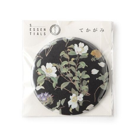 日本画家 伊藤 綾春の写生画帖「花卉寫生(かきしゃせい)」の中から「さざんか(山茶花)、きく(菊)、りんどう(竜胆)、のばら(野薔薇)の実、うめ(梅)]の5種類の植物を選定した、S.ESSENTIALSオリジナル図案「凛風ノ路」柄です。