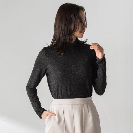 カシミヤ・シルク混の上質素材を使用したハイネックカットソー。