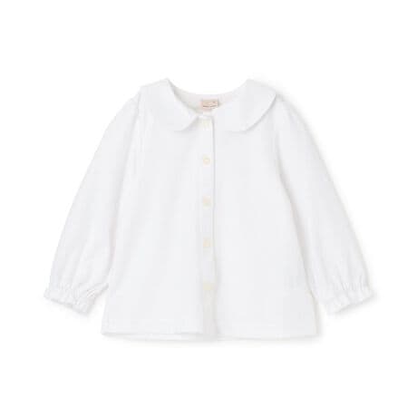 丸みを帯びた衿と、膨らみのあるスリーブが可愛らしいポイント。
