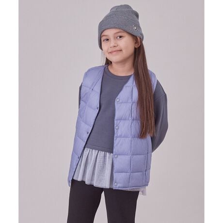 お子様へ着させやすい前たてボタン仕様、首元にダウンが当たらない仕様など、着用したくなるようなデザインに仕上がっています。コンパクトに持ち運びできるパッカブル仕様なので、すぐに着脱して荷物をまとめることができるのも嬉しいポイント。