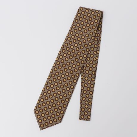 プリントのコモン柄が全体に配置されたクラシックな印象のネクタイ。