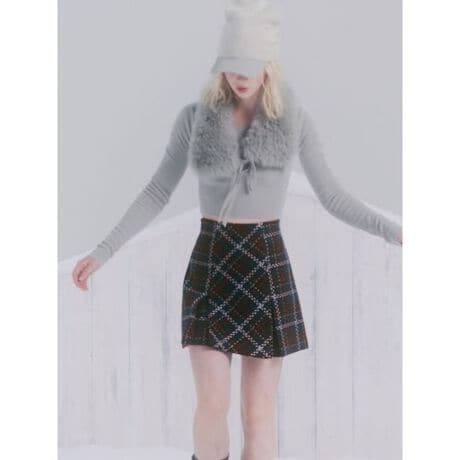 存在感のあるロービングヤーンを使用し、今季らしい華やかな彩りにてお作りしている、SNIDEL大人気のロービングスカショーパンが登場。今季はほんのりシックですがキャッチーさもある表情でそろいました。クラシカルなルックスがスタイリングの品を高める1着です。ブラックはモノトーンの千鳥柄調チェックで清楚に。サックスブルーは、淡いブルーを基調に、ベージュとホワイトを組み合わせた柔らかいトーンのフェミニンなチェック柄が魅力です。ネイビーは深みのあるネイビーに赤や白のアクセントを加えてトラッドに仕上げています。センターの生地をバイアス使いにして華やぎをプラス。トップスをインしてもスッキリと着こなせるハイウエスト仕様で、脚長効果も期待できます。リサイクルポリエステルを使用したサスティナブル素材でのお作りです。背中側のファスナーで着脱いただけます。