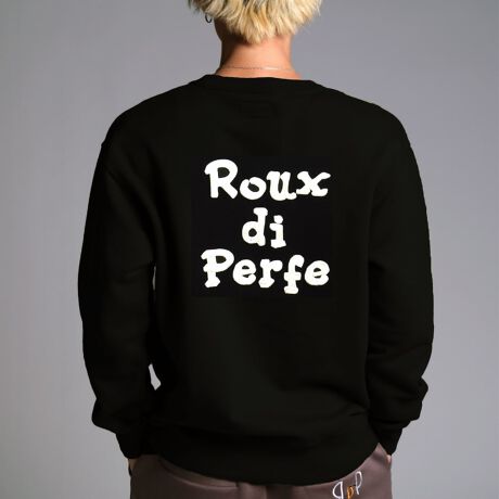 バックの刺繍はウレタンを入れて刺繍することで、立体的にふっくらとした凹凸感をだし。ロゴをより際立た裏起毛トレーナー。
