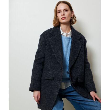 肩パットを入れたボクシーなフォルムが醸し出すモードな雰囲気と、軽くて柔らかいモヘアシャギーのバランスが、絶妙な一枚に。