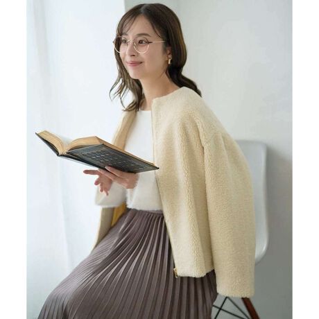 トレンドのボアブルゾンをノーカラーデザインで仕上げました。カジュアルになりすぎないデザインは品良く大人女子にぴったり。ゆったりとしたサイズ感で中に厚手のニットも着こなせるのも嬉しい。