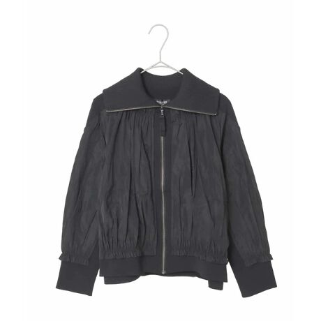 光沢のあるタフタ素材にニットを組み合わせた質感のコントラストが魅力のひと品。フロントや袖にギャザーディテールを効かせることでスタイリングを華やかに印象付けます。お好きな位置でアレンジしてタートルネック風にもお楽しみ頂けるファスナーデザインも魅力。