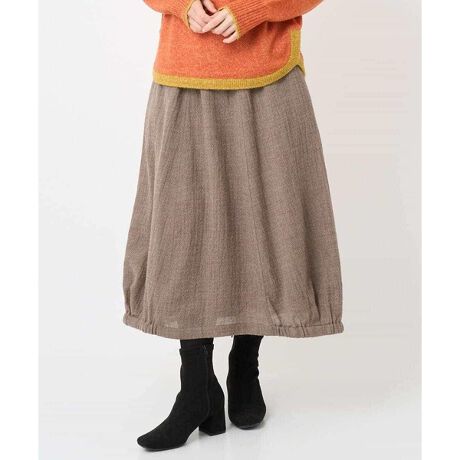 素材の軽さを生かしたボリューム感のある6枚接ぎのスカート。ウエストはゴムの仕様履きこみタイプで着用しやすく、タックとギャザーを施しふんわりとした表情のあるシルエットに仕上げています。カジュアルさときちんとさを兼ね備えた大人の雰囲気が漂うアイテム。