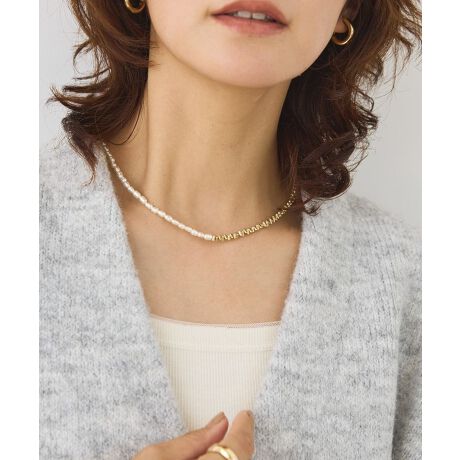 ニュアンスあるパールビーズとメタルパーツが並んだミックスデザインネックレス。首元にさり気なく存在感を加えるデイリー使用にもおすすめしたいひと品です。アジャスターフック仕様で着脱もしやすく、軽量なのも嬉しいポイント。カジュアルなTシャツからレディなブラウスまで幅広く合わせていただけるアイテムです。※モデル着用画像は、光の当たり具合で色味が違って見える場合がございます。※お使いのモニター環境によって商品の色味が違って見える場合がございます。