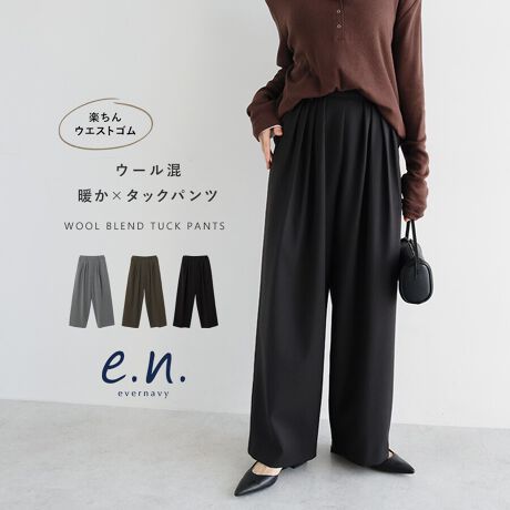ウール混 タック ワイド パンツ evernavy エバーネイビー