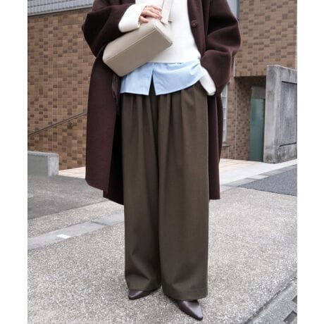 ウール混 タック ワイド パンツ evernavy エバーネイビー