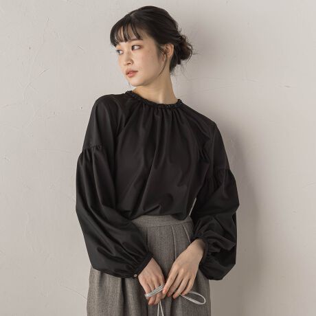 ネックのブレードがポイントのデザインブラウス。