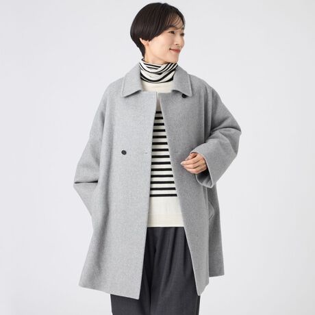 たっぷりとしたシルエットがポイントのステンカラーコートです。ボタンを留めて襟を立たせエレガントな印象にも、顔周りの襟を折りクラシカルな雰囲気にもなります。また上のボタンを開けて、チェスターコートとしても着用可能です。ゆったりとした身幅と袖感なので、インナーを選ばないのも嬉しいポイント。