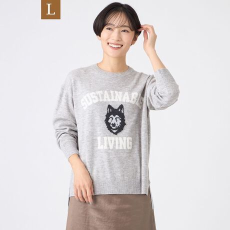 【L】【SANYO Style EDITION掲載】【ウォッシャブル】ウルフカレッジロゴニットプルオーバー