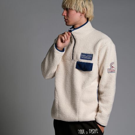 ジップラインとポケット部分のカラー配色がポイントのボアハーフジップブルゾン。