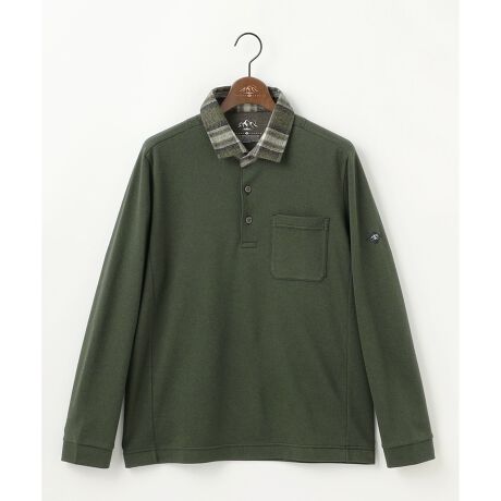 襟には同シリーズのメランジチェックシャツの素材を使用し、アクセントに。スプリットラグランの肩まわりは動きやすくフィット感が良い設計です。