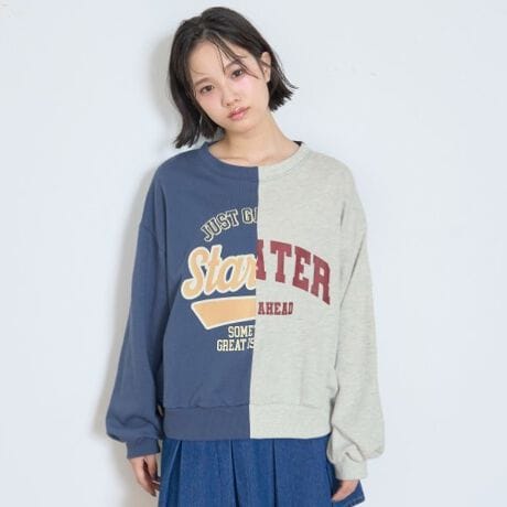 リメイクしたようなユニークな切り替えが目を引くトレーナーです。