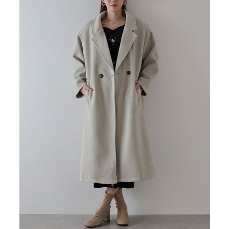 どんなアイテムとも合わせやすいシンプルなデザインのチェスターコート。