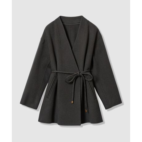 ?首に沿って立ち上がった襟元や、?すっきりシャープな両玉縁ポケット、?スナップ釦がついているので?フロントが着崩れることもなく、?綺麗めで品の良い?印象を与えてくれる?ノーカラーラップコート。?