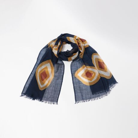 大柄のプリントが目を惹くデザインになっており、薄手のウール素材で軽やかな質感で首元を華やかに演出してくれるアイテム。