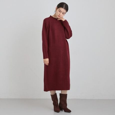 ウール混のウォーム感あふれるニットワンピースは、ハイネック仕様で首元からしっかりと暖かさをキープ。