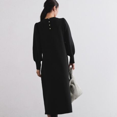 ・裾をフレア切替えにしたデザインが華やかなニットワンピース。