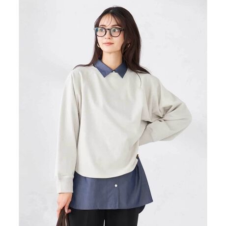 襟からシャツやシアーインナーを出したレイヤードスタイルがおすすめ。