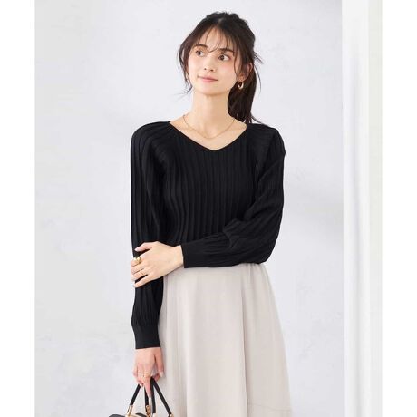 ◆WEB限定:Vネックパフスリーブニット:K2FED79039