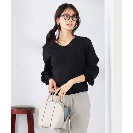 胸元の開きが気にならない絶妙なVネックで、上品&安心感抜群。