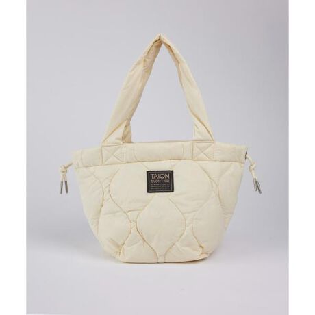 ■デザイン"トートバッグ→巾着バッグ、2WAYで楽しめるダウンバッグ"2WAYで楽しめる、スモールサイズ(ランチトートサイズ、スマホや小物等が収まるサイズ)のダウントートバッグです。高密度ナイロン生地に、800FPの上質ダウンを使用しヘチマキルトで仕上げ軽くて柔らかな質感を再現しました。バッグ口を絞ると巾着バッグに変化し、スタイルに合わせて2WAYで楽しめます。特に女性にオススメしたい、着こなしのアクセントにも使えるバッグです。・2WAY仕様(トートバッグ/ストリングバッグ)の商品です。・柔らかく張りのある高密度生地を使用しています。・800FPの上質なダウンを使用しています。・バッグ口の紐を絞ることでストリングバッグになります。※男女兼用です。同素材のバナナショルダー ダウンバッグM品番:1054201011同素材のバナナショルダー ダウンバッグL品番:1054201012同素材のクロスボディ ダウンバッグS品番:1054201013MILITARY LINEについてMILITARY LINEはその名の通りミリタリーをモチーフにしたインナーダウンを取り揃えたラインです。TAIONのダウン品質についてTAIONは、嵩高の高い800FPのダウン(羽毛)を採用しています。 一般で使用されるダウン(一般:600FP前後)よりも軽くて、 暖かい空気をたくさん含むことができます。*一部800FPではないアイテムもあります。予めご了承ください。ATTENTIONダウンは天然由来の素材であるため、稀に濃い色の羽が混入することがあり、表面に透けて見える場合がございます。※こちらは不良品ではございません。返品や交換につきましてはご対応いたしかねますので、あらかじめご了承ください。(解消方法:少し目立つ箇所がございましたら両手で少し揉んで頂くと目立たなくなります。)■サンプル撮影商品画像の商品はサンプルです。実際の商品とはサイズや色味、素材、デザイン等の仕様が若干変更になる場合がございます。■照明の関係により、実際の製品とは色味が違って見える場合があります。またパソコン・スマートフォンなどの環境により、若干製品と画像のカラーが異なる場合もございます。■サイズ表記はあくまで目安となります。
