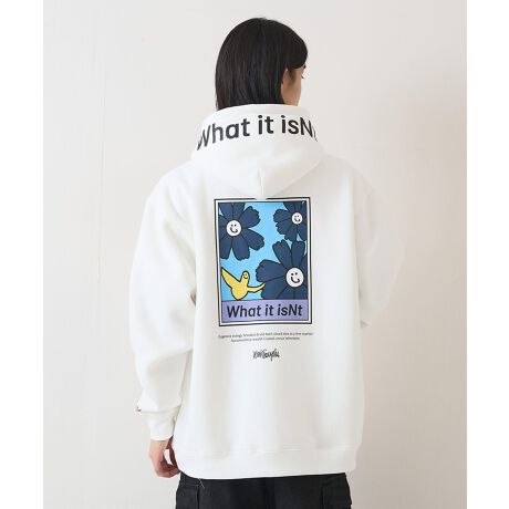 フード部分には、デザインポイントとしてWhat it isNtのロゴのプリントを入れ、