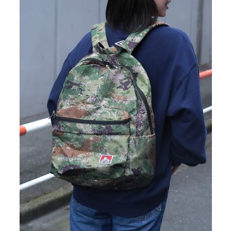 ◆BEN DAVIS/ベンデイビスからデイリーユース向きの新作デイパックが登場◆1フロントポケットと1メインコンパートメントのシンプルデザインデイパックです。ちょっとした外出にちょうど良いサイズで容量22L。左右両サイドのポケットにスマホやペットボトルを収納可能です。デイリーユースに最適なサイズ感のシンプルなデイパックです。メインルームの背面部分にPCスリーブ付き。迷彩柄は光沢感のあるライトな素材感です。