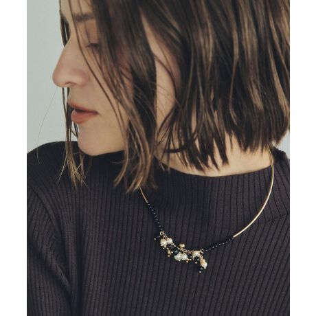 大小のパールパーツを組み合わせた華やかなネックレス。