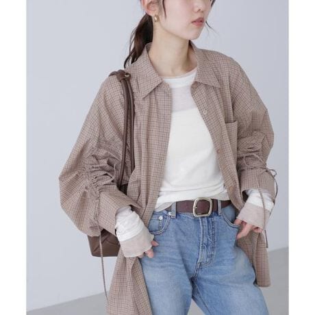 洗いをかけた風合いのあるコットン100%の素材を使用したオーバーシャツ。クタっとした手触りが心地よく、シワも気になりにくいです。厚手すぎないので羽織としてはもちろん、アウターINもかさばらず着ていただけます。生地が柔らかいので、ビスチェを上から着るスタイリングがおススメ。ドロップした肩線から袖口にかけてドロストしたデザインは、ドロストの調整で袖丈の長さを変えて着用できます。パンツやミニスカートともバランスが取りやすいデザインです。同素材のインナーパンツ付きナチュラルコットンバルーンミニスカート(店舗商品番号131-5220074)とのSETUPコーデもおすすめ。※モデルの着用画像の場合、光の当たり具合により、実際の色味と異なって見えることがございます。色味は、商品単体の画像をご参照ください。