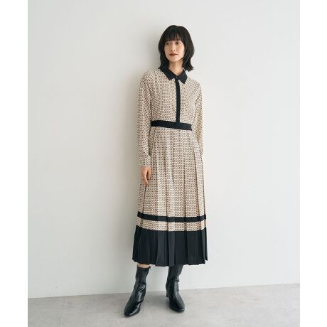 モードに着映えるジオメトリックデザインが魅力的なワンピース。