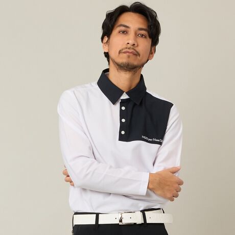 台襟付きのシャツは、襟元をきちんと押さえた設計で、ゴルフ場のドレスコードにもマッチ。
