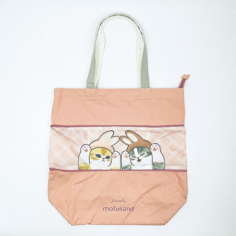モフサンドのトートバッグ。ファスナーの開閉で、サイズ調節が可能なので旅行のお供にも◎もちろん、普段のお買い物にも活躍できます!【サイズ(約)】開いた時:H46×W46×D17cm 閉じた時:H32.5×W46×D17cm