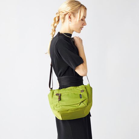 底部にタックをとってラウンド型のシルエットに仕上げたショルダーバッグ。