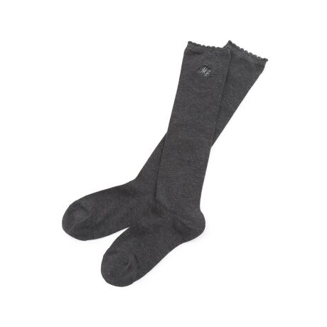はき口に入ったスカラップがポイントのハイソックスです。サイドのロゴ刺しゅうで上品な印象をプラスしました。ガーリーなコーディネートに合わせるのがおすすめです。抗菌防臭加工をほどこしており、快適なはき心地が続きます。