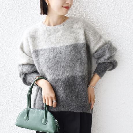 大人配色のグラデーションが素敵なモヘヤ混のニット。