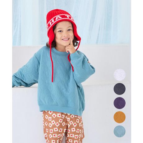 ふっくらと中わたを挟んだキルト素材のトレーナー生地。